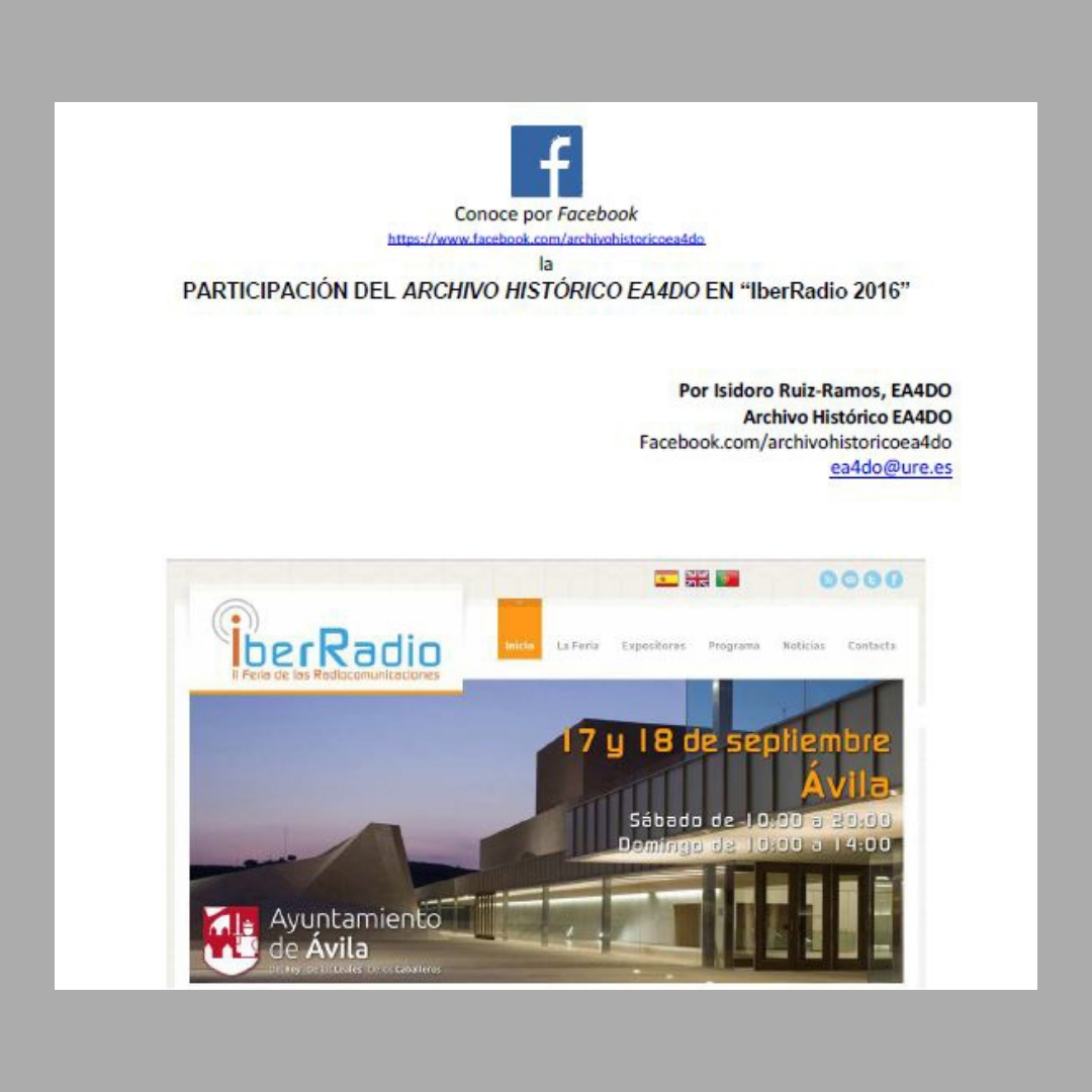 Publicaciones realizadas por Isidoro Ruiz-Ramos, EA4DO, en la página de Facebook del Archivo Histórico EA4DO, en relación a su participación en la 2ª edición de IberRadio celebrada en Ávila.