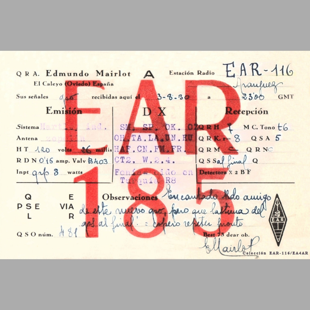 En el año 1932 fue frecuente escuchar en la banda de 40 metros a Antonio Bañón Pascual que operaba provisionalmente con el característico prefijo “EAR” seguido del sufijo correspondiente a las iniciales de sus propios apellidos “BP”.