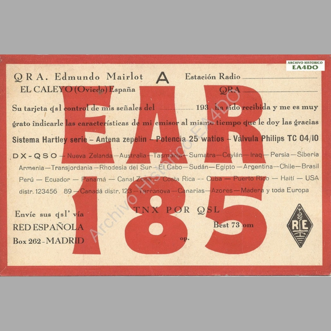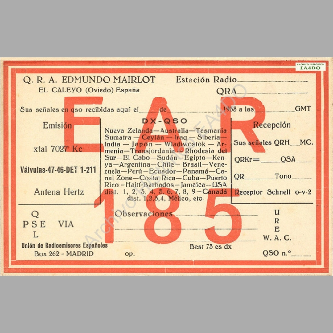 Durante el desarrollo inicial del estudio de la propagación de las ondas cortas tuvo lugar un eclipse de sol que aprovechó el entonces gran aficionado al DX, Edmundo Mairlot, EAR-185 después EA1AS, para comprobar las teorías del profesor Chapman.