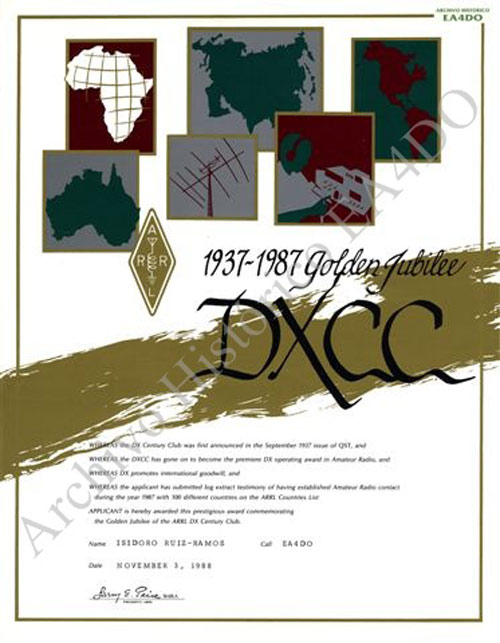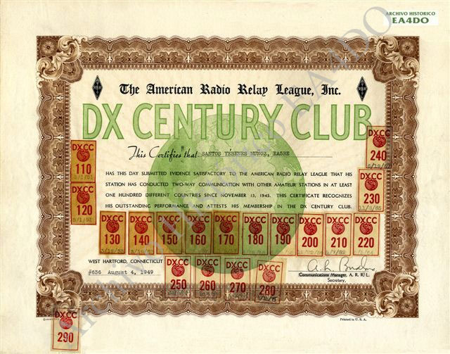 Su DXCC fue el primero que tramitó URE en 1949, cuando aún operaba con el indicativo valenciano EA5BE, y en la Historia de la Radioafición española habremos siempre que recordarle no sólo como gran telegrafista, sino también como el más importante “cazador” de diplomas.