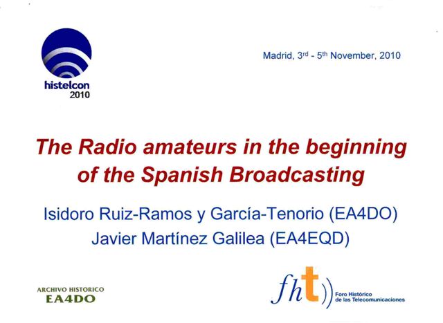 Ponencia presentada por Isidoro Ruiz-Ramos EA4DO en el Congreso Internacional de Historia de las Telecomunicaciones de Madrid, Octubre 2010.