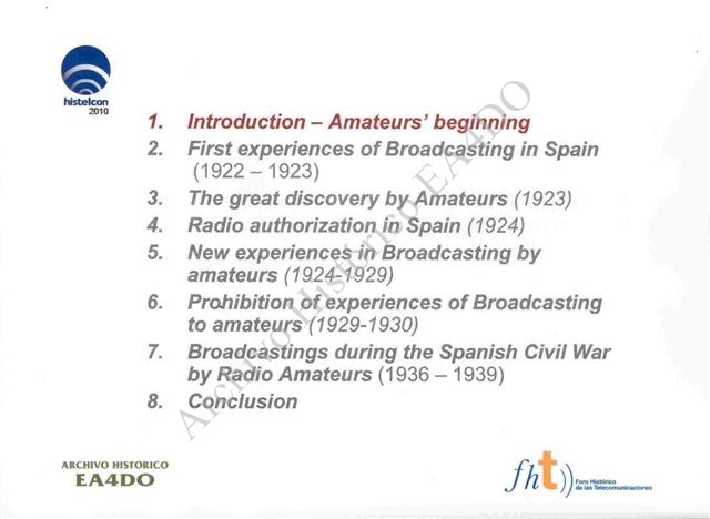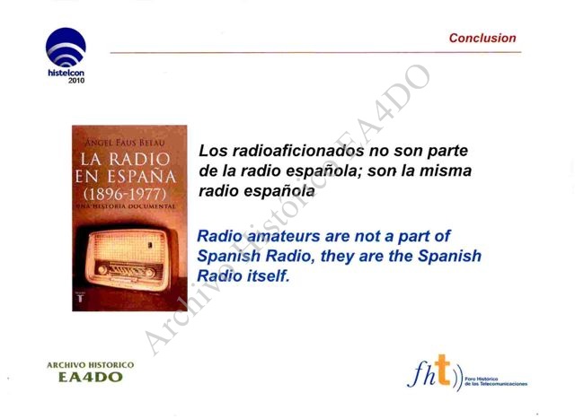 Mi agradecimiento a Javier MARTÍNEZ GALILEA, ea4eqd, POR LA TRADUCCIÓN DEL TRABAJO QUE HA SIDO PUBLICADO EN EL LIBRO: HISTELCON 2010 MADRID – A CENTURY OF BROADCASTING – CONFERENCE PROCEEDINGS