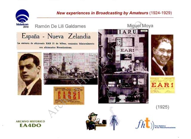 Mientras que en Madrid continuaron saliendo algunas más Emisoras radiotelefónicas locales, como se las llamó entonces dada su pequeñísima potencia, el 11 de diciembre de 1925 fue otra fecha histórica de la Radio española al lograr Ramón de Lili Galdames, EAR-21, desde Bilbao, la primera comunicación radiotelegráfica con nuestros antípodas en Nueva Zelanda. Días después lo consiguió en Madrid Miguel Moya, EAR-1.