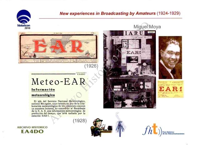 El 26 de enero de 1926 quedó constituida oficialmente la Asociación EAR, fundada y presidida por Miguel Moya con la finalidad de reunir a los aficionados interesados en la emisión y recepción de las ondas cortas. Ciertos amateurs continuaron emitiendo esporádicamente música y actos culturales desde distintos puntos de España, pero con independencia de tal actividad, cabe mencionar la que comenzó a prestar diariamente el propio Miguel Moya desde su estación EAR-1 a partir del 6 de febrero de 1928. Fue una colaboración de verdadera importancia, pues el Servicio Nacional Meteorológico le pasó con regularidad la información sobre la predicción del tiempo que emitió en onda corta con el nombre de Meteo-EAR.
