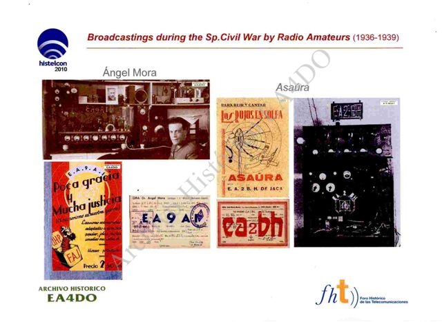 Bando de declaración del estado de guerra. A pesar de ello, algunas estaciones de aficionado comenzaron a ser empleadas como arma de contra propaganda en onda corta, en lo que se llamó “La Guerra de la Radio”. A este respecto hubo verdaderos programas radiofónicos desde la zona liberada, como fueron los de “Poca gracia y mucha justicia” emitidos en Melilla (Norte de África) desde la estación del capitán médico Ángel Mora, EA9AI, o los realizados desde la EA2BH de Jaca (Huesca) por “Asaúra”, los cuales encontraron su réplica desde la zona republicana por con la guerra dialéctica mantenida por el telegrafista de Torrente, en Valencia, Francisco Cano, EA5AD.
